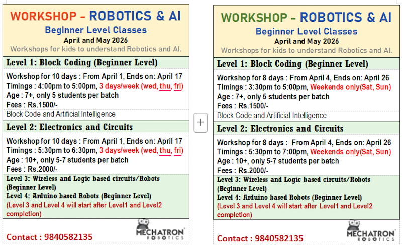 Beginner Level Classes to understand the concepts or ROBOTICS and AI.